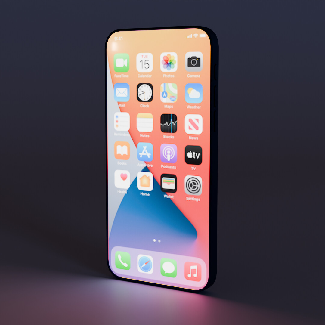Everything seen was done by me except for the home screen texture, which I lifted from the Wikipedia page for iOS 14 (https://en.wikipedia.org/wiki/IOS_14).